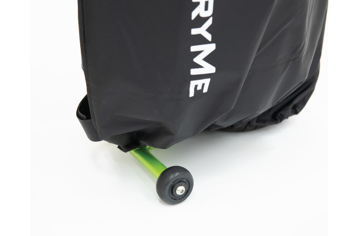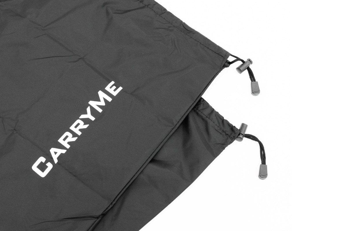 重量:90g 素材:ナイロン チューブ形状を採用し、上下のドローコードを締めることで着脱もカンタン。 キャスターホイールを出すことで、転がしての移動も可能となっており、保管時のヨゴレ/キズ防止だけでなく、簡易的な輪講袋としても使用可能です。 収納時は手のひらサイズに収まり、持ち運びの手間もかかりません。
