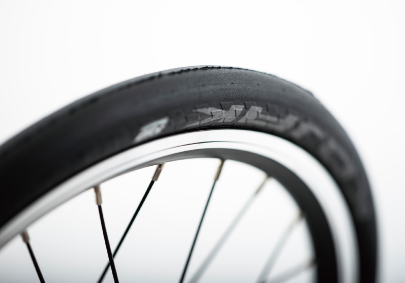 転がり抵抗の低い細身のスリックタイヤを装備し、軽快な加速とハンドリングを実現。