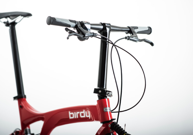 剛性の高い固定式ステムを採用。スポーティーな前傾ポジションをとることができる。| フレーム | birdy monocoque |