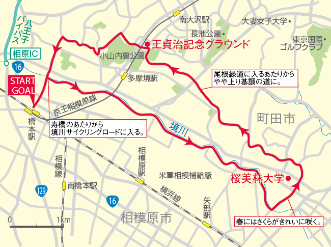 当店からまっすぐ境川サイクリングロードに出ると、春にはさくらがきれいな道になっております。町田方面に向かい、桜美林大学をまわって尾根緑道に出ると、しばらく車両進入禁止の道があるのでゆったり と走ることができます。緑道沿いには小山田桜台緑地が広がっているので、気持ちよくbirdy を楽しめますよ。